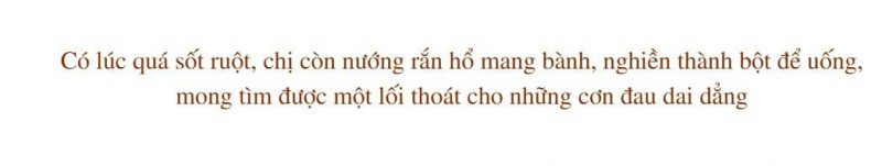 Không cam chịu, chị Huệ chạy chữa khắp nơi. Từ thuốc tây, thuốc bổ não, cho tới các lần chụp chiếu tại bệnh viện, chị được chẩn đoán là rối loạn vận mạch, kê đơn uống nhưng vẫn không cải thiện. Có lúc quá sốt ruột, chị còn nướng rắn hổ mang bành, nghiền thành bột để uống, mong tìm được một lối thoát cho những cơn đau dai dẳng. Thế nhưng, mọi thứ chỉ đỡ được một thời gian ngắn, hễ đau trở lại là “đau trận nào, gục trận đó”.