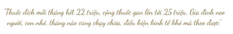 “Thuốc đích mỗi tháng hết 22 triệu, cộng thuốc gan lên tới 25 triệu. Gia đình neo người, con nhỏ, tháng nào cũng chạy chữa, điều kiện kinh tế khó mà theo được”, anh chia sẻ.