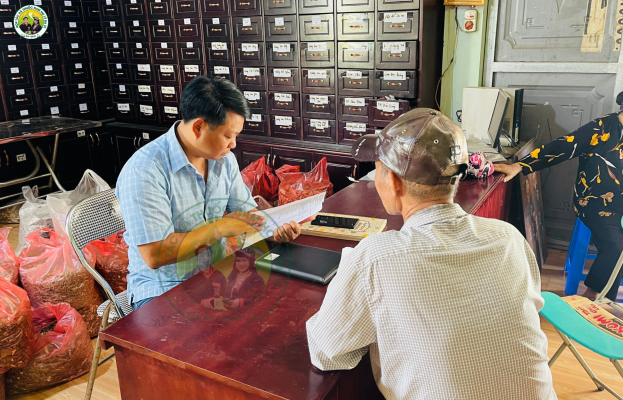 Buổi sáng, sân nhà lương y Lý Sinh Phúc đã có người đến chờ. Có cụ già đau khớp gối lâu năm, có người bị viêm dạ dày, cũng có cả người ở xa lặn lội về chỉ để được ông bắt mạch. Gian nhà nhỏ thoang thoảng mùi thuốc phơi, tiếng trò chuyện xen lẫn tiếng ghi chép đều đặn. Ông Phúc lặng lẽ lắng nghe, nhìn sắc mặt, bắt mạch, đôi tay già mà vẫn chắc, từng đường gân nổi rõ dưới ánh sáng ban mai.